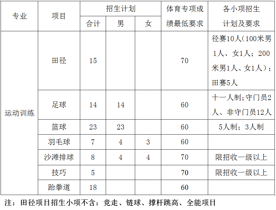 3.根据国家体育总局规定,运动训练专业实行提前单独录取,考生如已被我校运动训练专业录取,则不再参加其他普通高等学校录取。