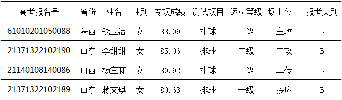 中北大学2021年高校高水平运动队排球项目专项测试合格考生名单公示