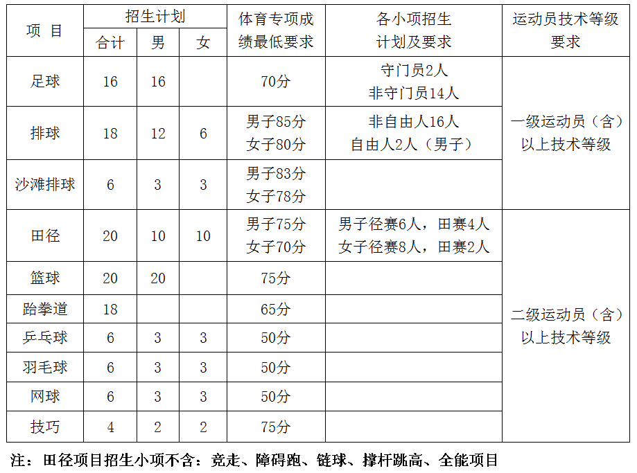 3.根据国家相关规定,运动训练专业实行提前单独录取,考生如已被我校运动训练专业录取,不得放弃录取资格,同时不再参加普通高考及高校高水平运动队的录取。