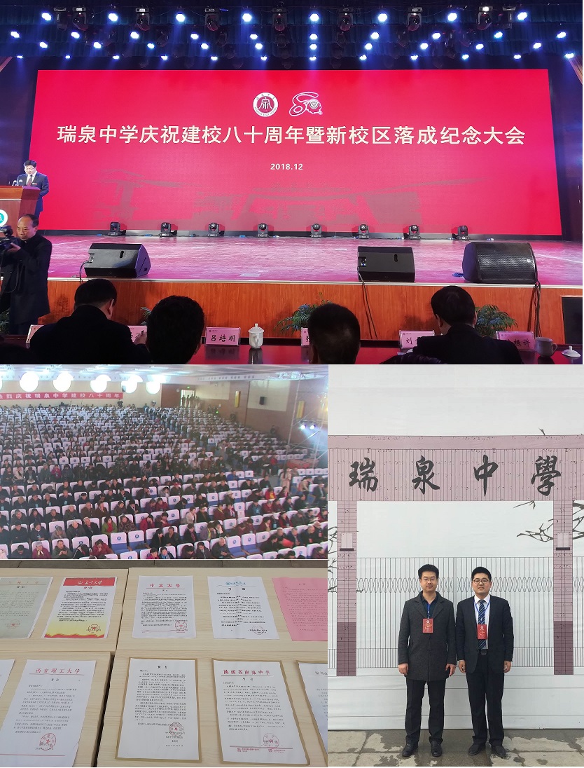 2018年12月1日,渭南市瑞泉中学隆重举办了80周年校庆大会,我校受邀参加。出席此次大会的有陕西省教育厅、渭南市相关单位领导、优秀校友代表,部分高校和陕西省部分高中也派代表参加了此次大会。