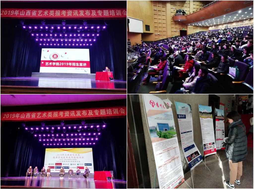 2018年12月17日,由《山西教育》杂志主办的“2019年山西省艺术类报考资讯发布及专题培训会”在山西艺术职业学院星光剧院举行,国内10多所艺术类招生院校和近400名考生及家长参加会议,我校招生与就业工作处宋旭东副处长,招生办公室辛振东主任和艺术学院学生科夏志丽科长参加了会议,夏志丽科长代表我校进行了艺术类专业招生宣讲。