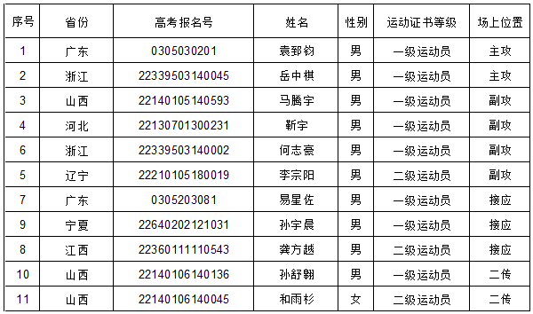 中北大学2022年高水平运动队排球项目预报名资格初审合格名单