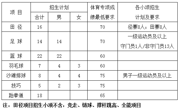 3.根据国家相关规定,运动训练专业实行提前单独录取,考生如已被我校运动训练专业录取,不得放弃录取资格,同时不再参加普通高考及高校高水平运动队的录取。