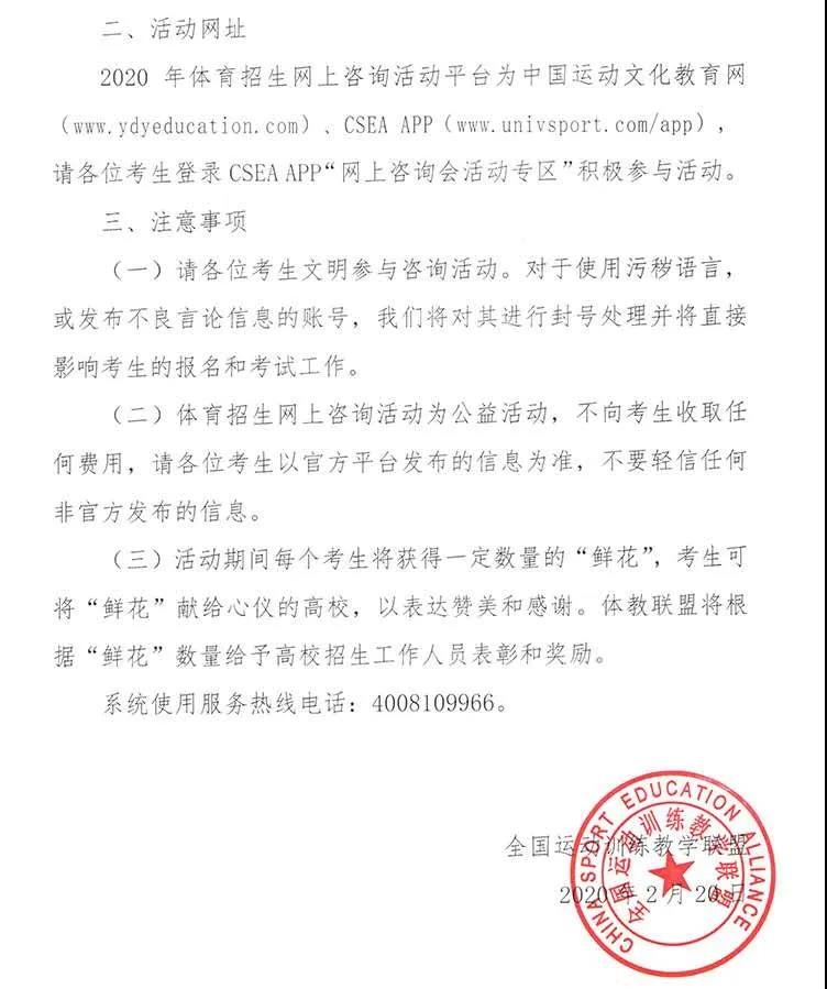中北大学2020年招收运动训练和高水平运动队考生,将按时参加网上招生咨询活动并进行答复,同时我校日常咨询仍将进行(联系方式附后),欢迎各位考生咨询并报考我校!