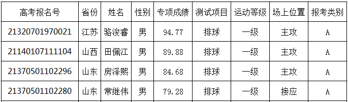 中北大学2021年高校高水平运动队排球项目专项测试合格考生名单公示